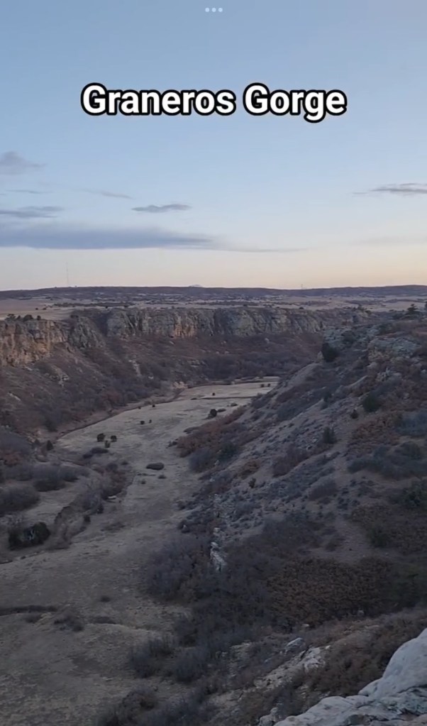 Near colorado city, the gorge is deep and at the bottom flows the Graneros Creek.