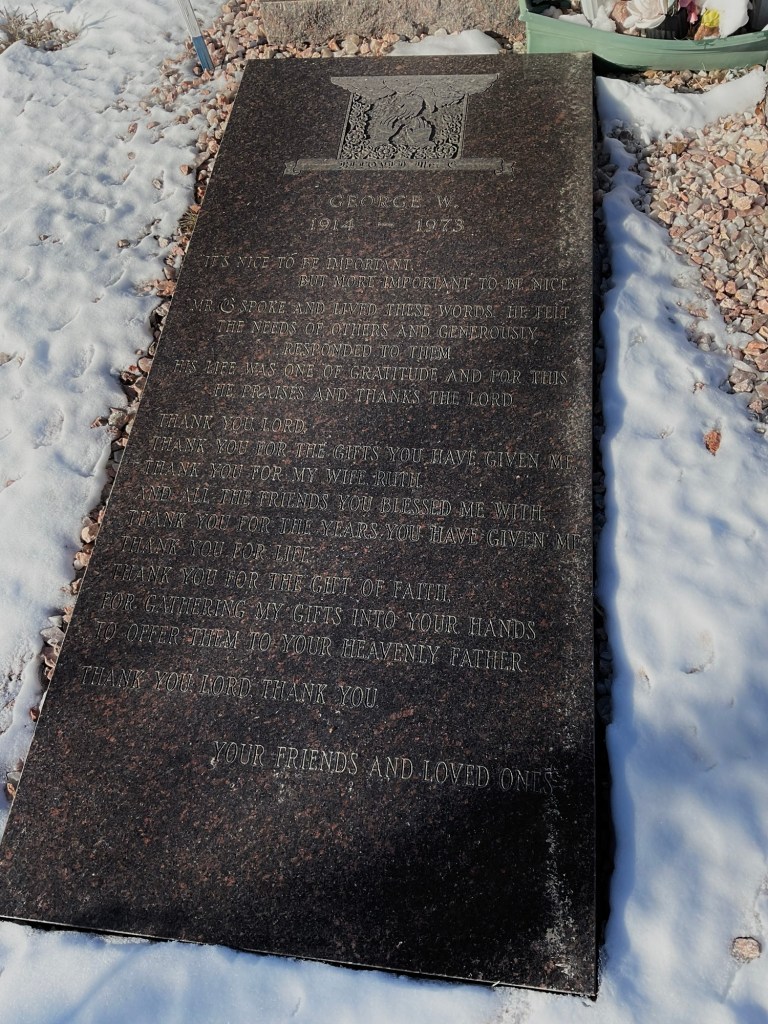 George has an inscription on his stone reading “It’s nice to be important, but more important to be nice.”