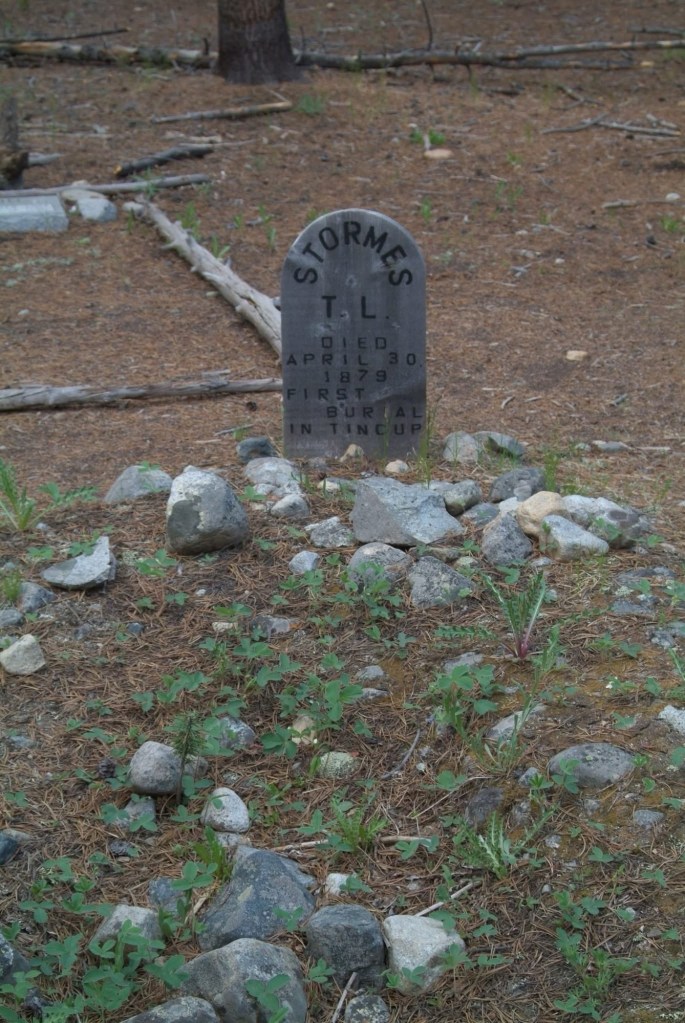 The first person buried in the Tincup was T.L. Stormes. He was buried on the Protestant Knoll.