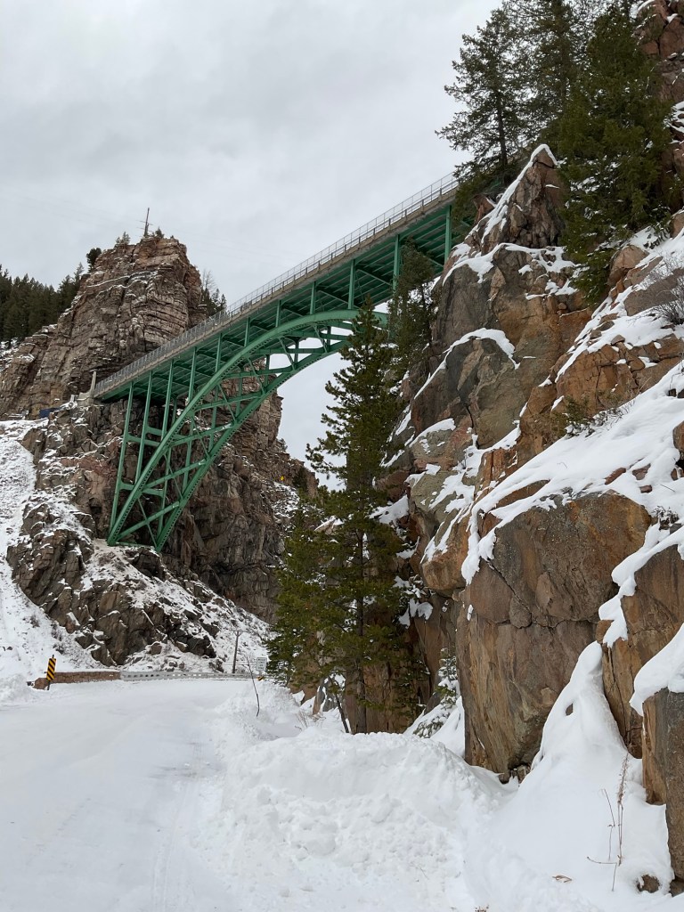 The dominating feature off the town can be easy to miss going North on highway 24 if you’re not watching for it, and that is the the stunning green bridge. I definitely recommend driving over it and under it. The bridge carries highway 24 over the Eagle River across a deep gorge. Photos will never do justice too this bridge. It spans 471 feet across the valley from Cliff to Cliff. Standing 200 feet below it is a another bridge for the railroad tracks below that. There are only 2 steel Arch bridges in Colorado and this is one of them. The Cantilevered Steel Arch Bridge was Designed by King Burghardt and built by contractor P.M. Kenney, The bridge was completed in 1940. The bridge was added to the National Register of Historic Places in 1985.