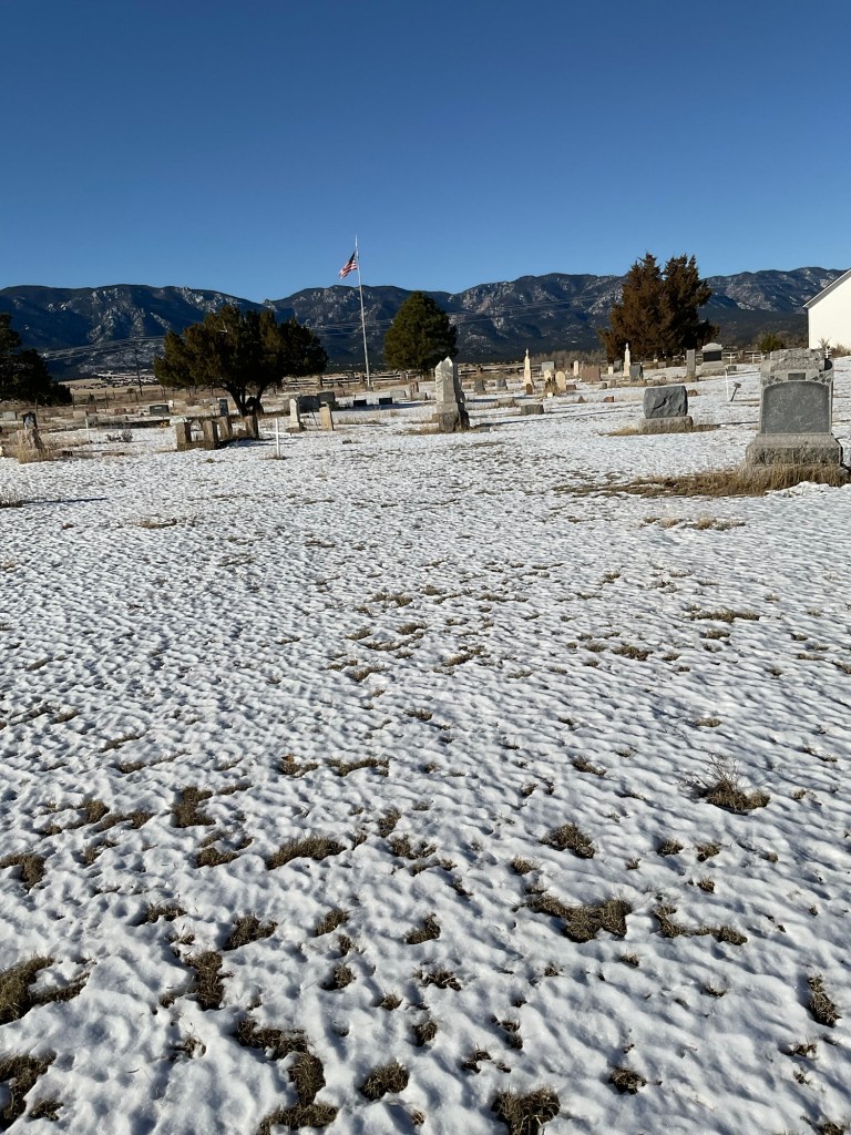 I did note that this grave was facing West. Most of the graves in this cemetery are. Perhaps the graves are facing the outstanding view of the mountains. Could be to face the road as to greet those people coming to visit them. There are some cemeteries that only allow for graves to face one direction, simply for aestetics. I did see a few stones that faced East in this cemetery, toes to the east and head to the west, so away from visitors coming through the gate.