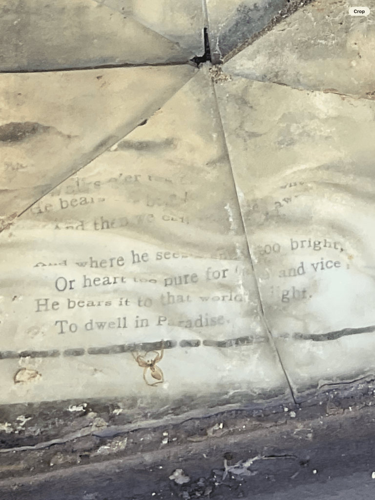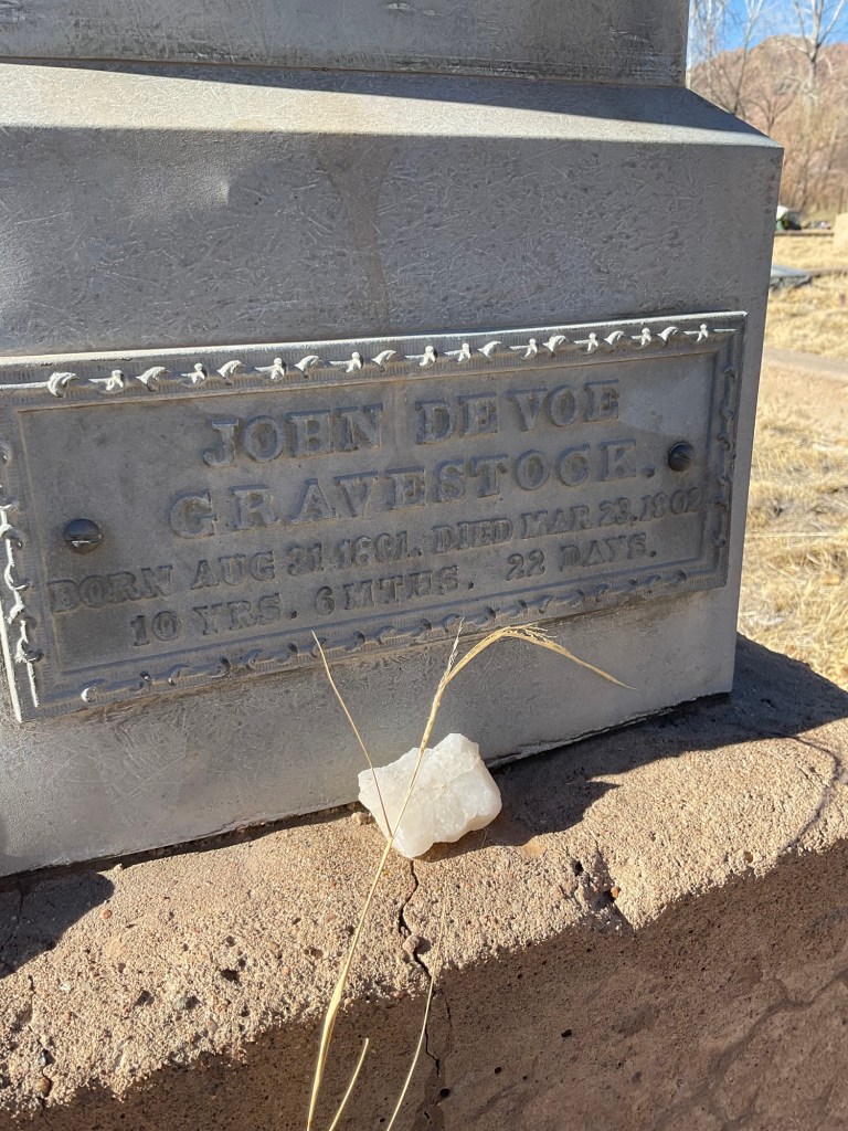 I won’t speculate on what it says, and I will check when I have time to see if the history center has the original type on record. There are a few of these type of stones in the cemetery. I know 4 of them are children and babies. This is one of 6 this style in the Greenwood Cemetery, Cañon City, Colorado. More of these to come, and more from this cemetery coming very soon.