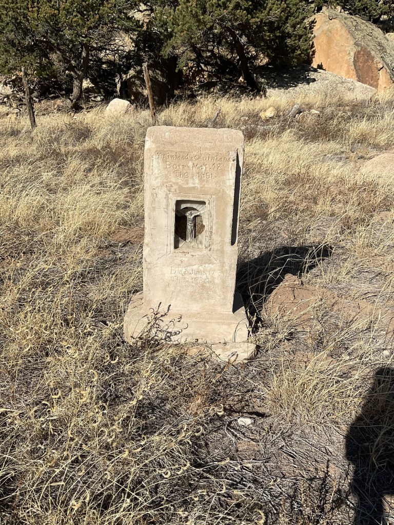 The cemetery that Trinidad Quintana is buried in is near Gardner Colorado. The town of Red Wing was nestled against the hill to the west of Gardner near the river. In the foothills of the Sange de Cristo Mountains, it has a settler history of wagons routes, and a long history of life in that valley before that. Part of the Chama-Crestone route, traders were likely to be there much before the settlers that changed the name. Trails from the Utes were nearby and it is said that Cheif Ouray likely visited on the way through to Mosca Pass.
