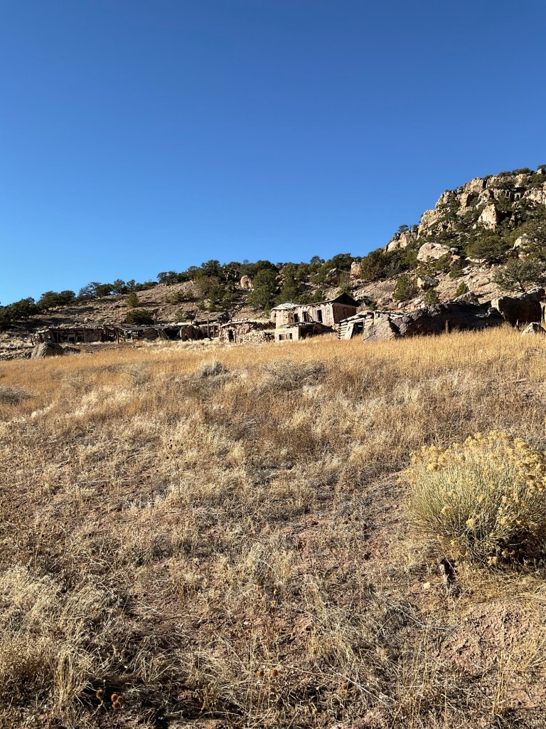 A row of neat, small south facing sheds made a perfect little commune. It’s not certain if they built the additional cabins or moved them in. According to one article I read, some of the buildings were not there before. There is also an adobe house on the grounds. These buildings are all in such a neat little row, It’s such an amazing thing to come across on the backroads. The first time I happened across this, I was in awe. Completely. I could live there, without a doubt. Or regret. I instantly wanted to sell everything and come repair those tiny little houses. My family would fit perfectly there against that cliff.