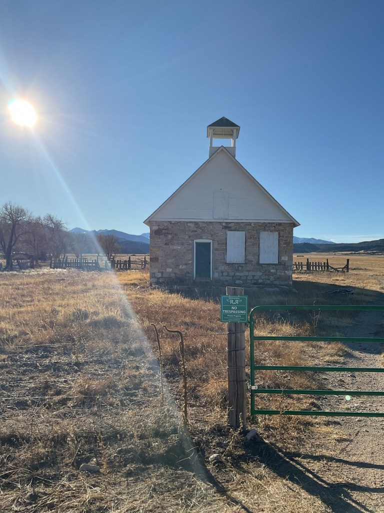 This is the smallest, coolest ghost town in Colorado by my standards. The beautiful cliff it’s nestled into reaches all the way west to the Sangre de Cristos. This road at the edge of these foothills, was once a trading trail and a way across the mountains for Chief Ouray and other travelers. It is said that the trails nearby were used by travelers and they would camp along the cottonwoods to rest near the creek. The other small townsites around the valley were just as important and quaint. All sharing one thing in common, small community life.