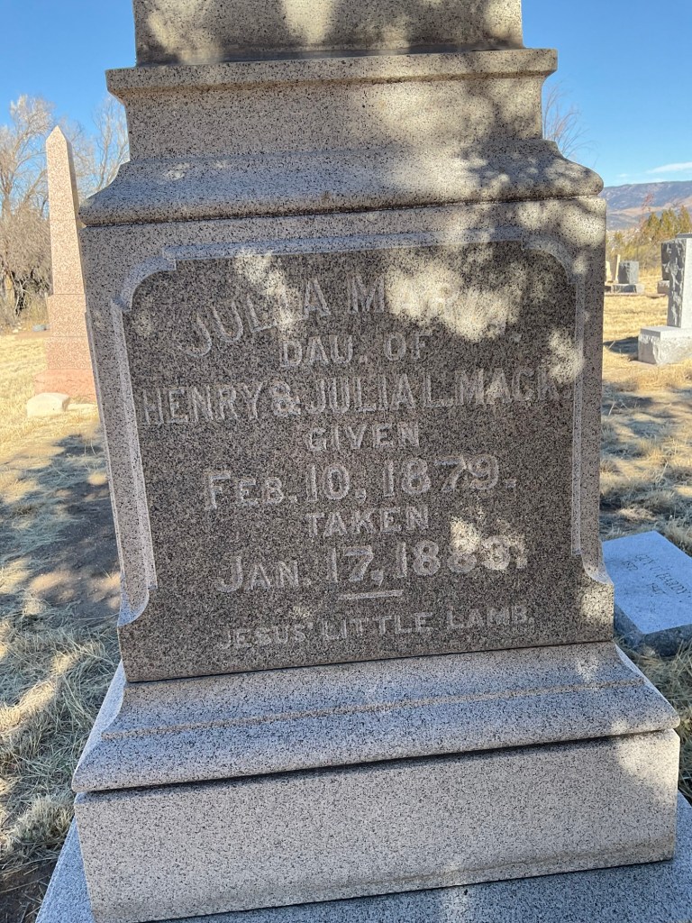 Daughter of Henry and Julia Mack. She passed away just before her 4th birthday from illness.