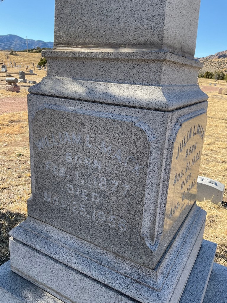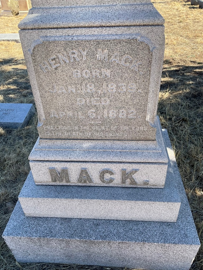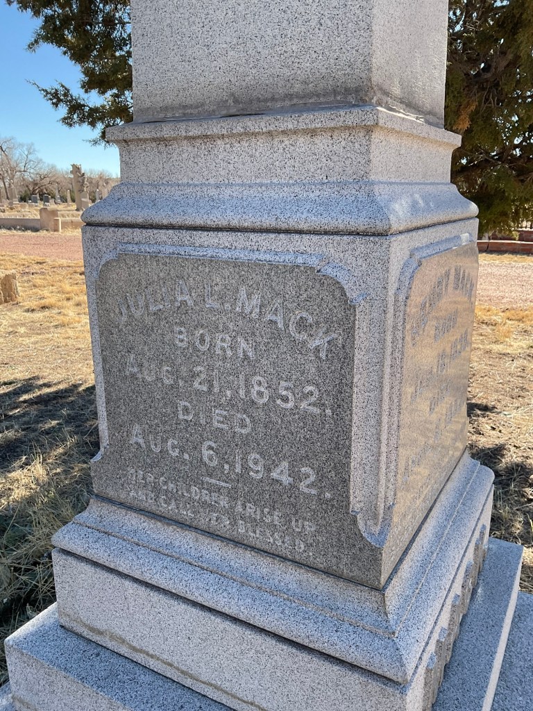 This four sided obelisk is there for the Mack Family. The engravings are on each side as follows.
