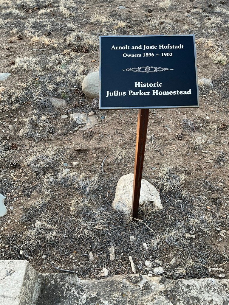 The plaque at the head of these two stones says that Arnolt and Josie Hofstadt lived in the Julius Parker Homestead from 1896 to 1902. These stones had no markings on them that could still be seen. The only discernable information on them is this plaque while at the cemetery, unless I missed something!