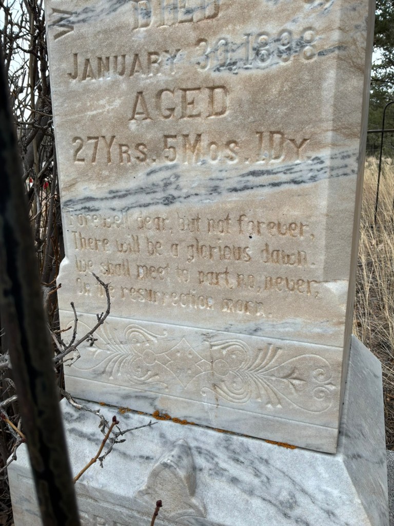 His inscription reads “Farewell dear, but not forever. There will be a glorious dawn, We shall meet to part no, never. On the resurrection morn,”