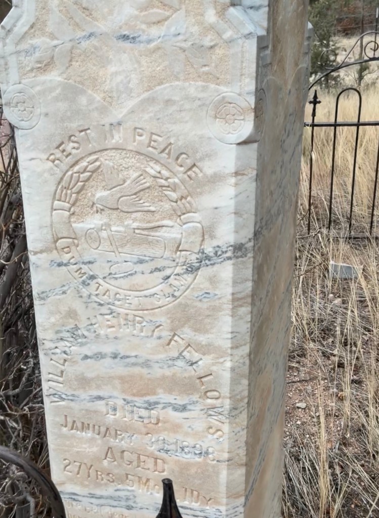 The Silver Cliff Rustler Newspaper printed a story about William Henry Fellows, brother to Oscar. The paper stated that Will was 26, when a telegram bought sad news that he was dying. His brother James and his father in law, JA Smith, started immediately for Idaho Springs but made it too late and arrived after he had already passed. His body was sent to Hillside, Colorado arriving on a Tuesday. Funeral services were February 2, 1898 and well attended by friends.