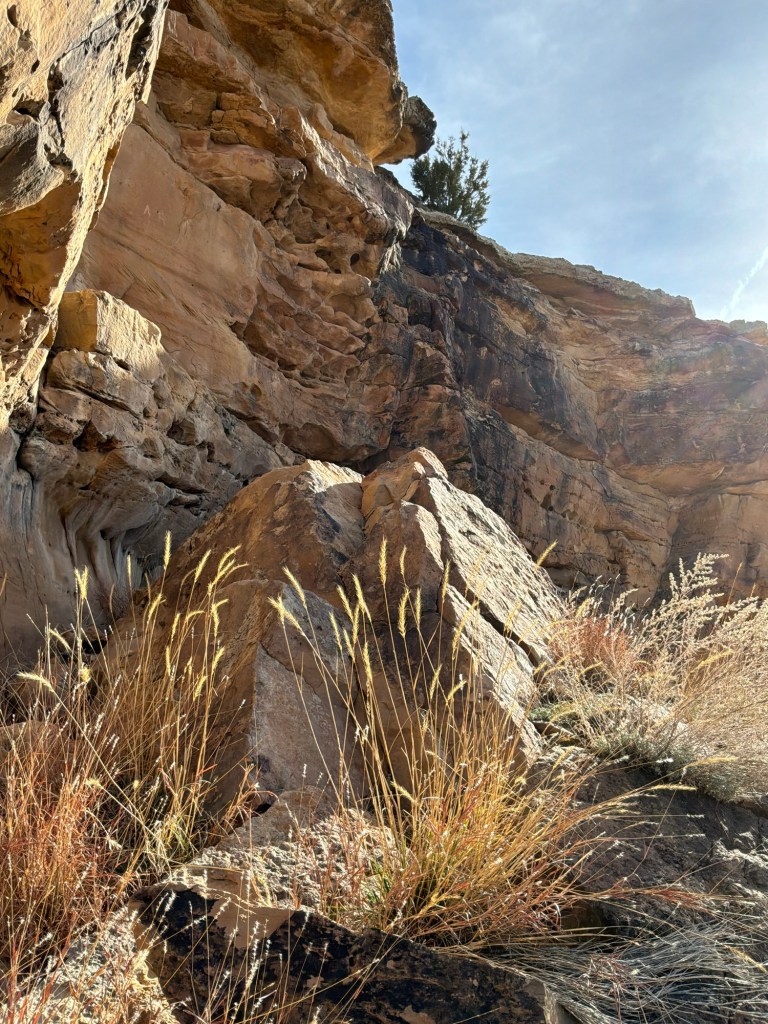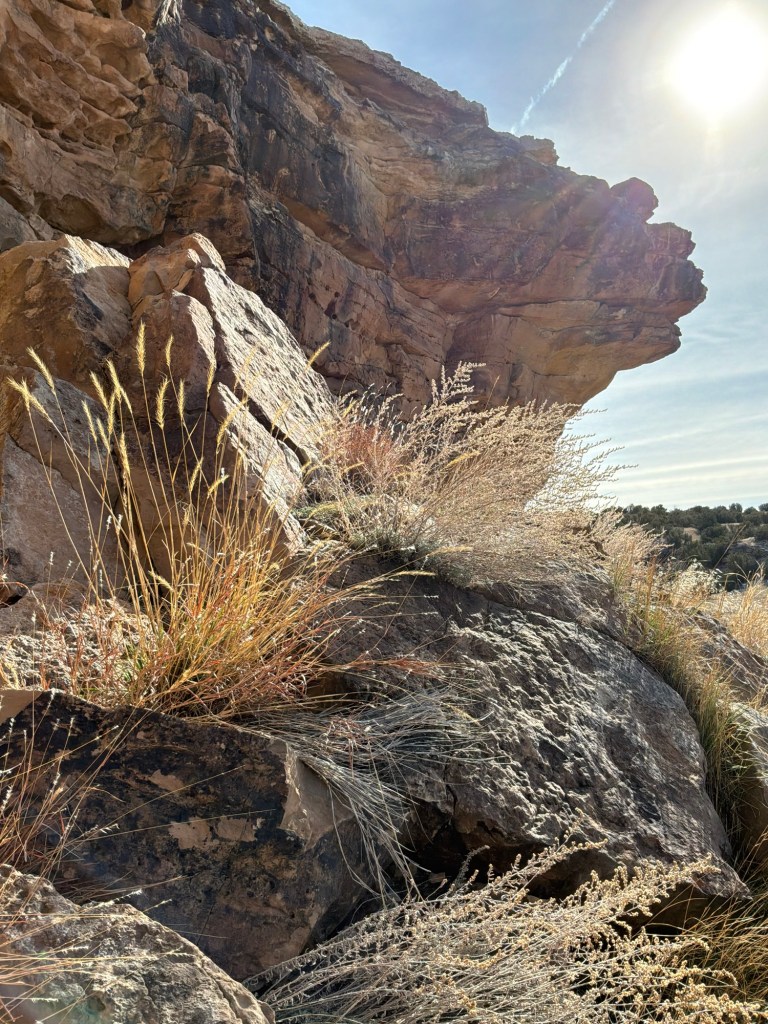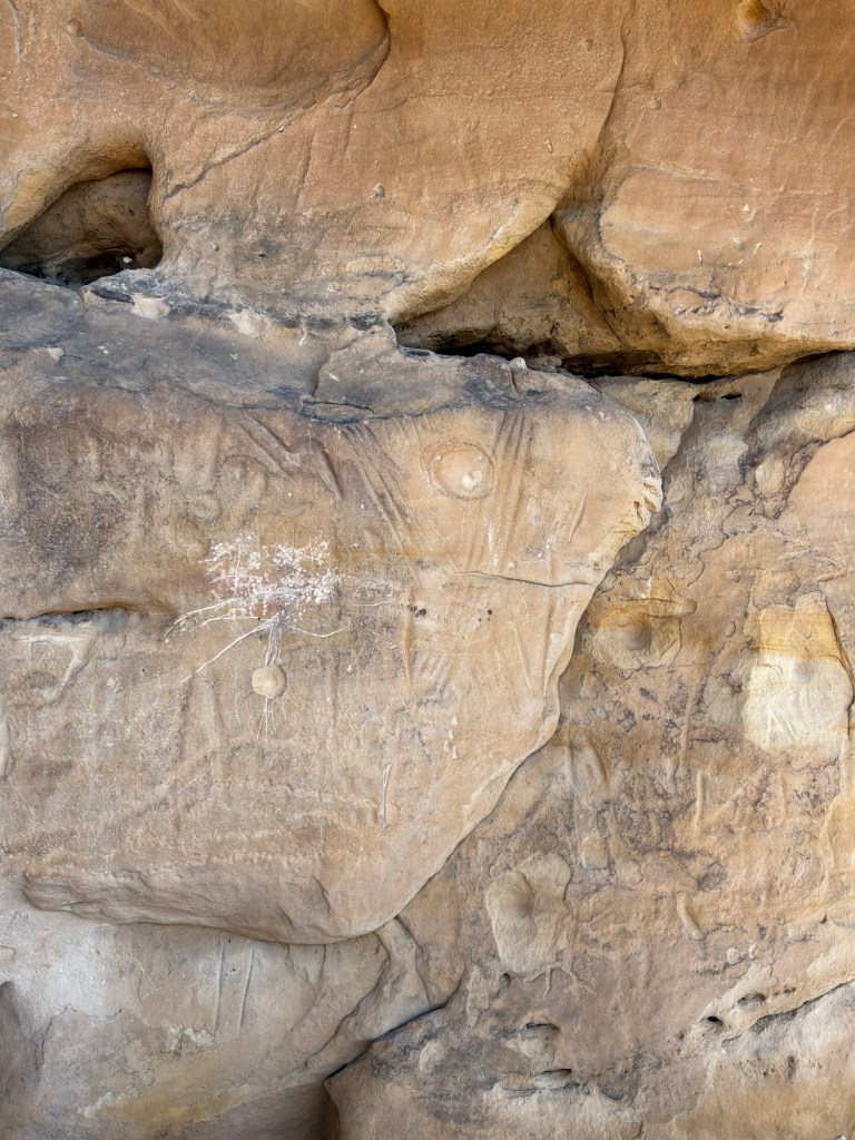 The hiking trails we did were a loop back to the picnic ground and were easy other than navigating that cliffside to get up to the carvings. The first trail we did brought us to an overlook of the canyon. The beautiful cliff face across the little valley was just getting the beginning of the afternoon sun, and I recommend getting there a little earlier so that the markings are in the shade and easier to see. Or later in the afternoon when the sun is lower. And watch for Scorpions and Rattlesnakes, especially in the warmer months!