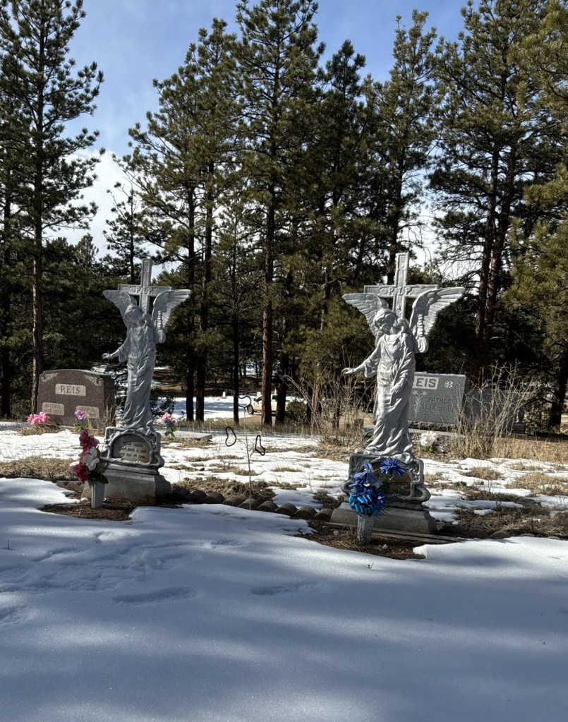 The White Bronze Crosses that mark their graves are visible from quite far away and are beautiful standing in the snow next to one another. I hope they rest peacefully together. The family home was situated on Antelope and they were long time residents, Ella was born and raised in Custer County.