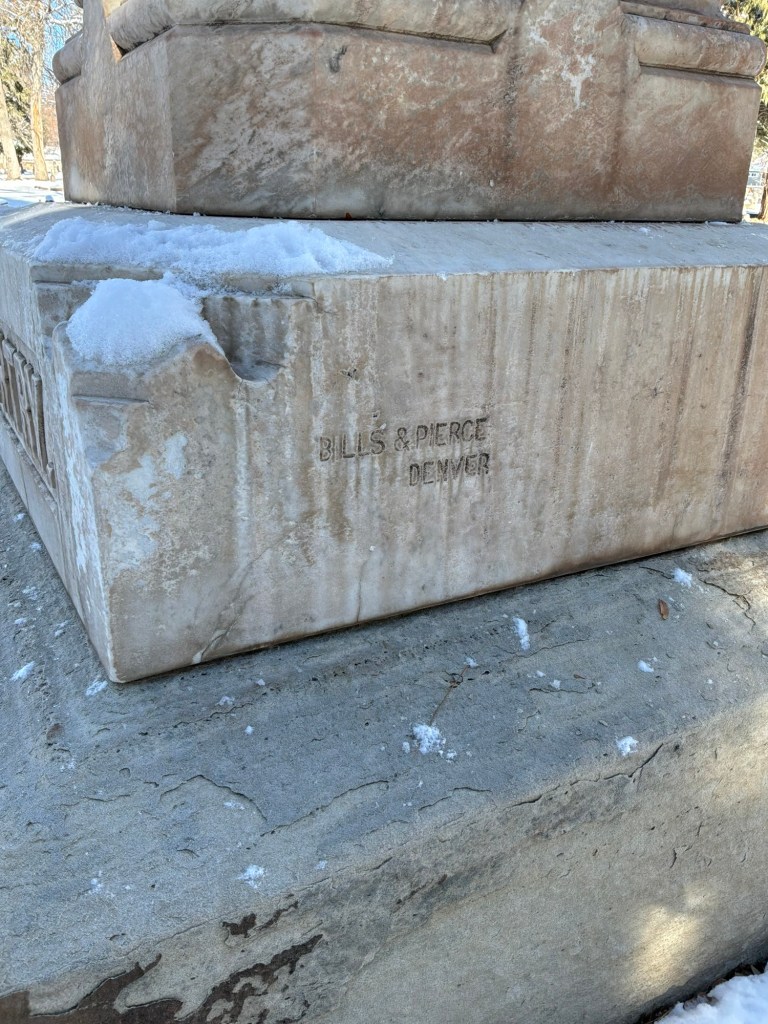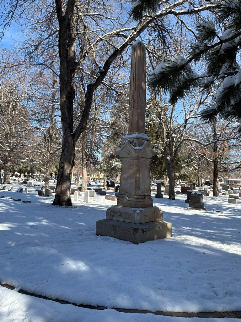 His very large obelisk is one the largest I’ve seen personally so far. It is a sight to walk up on. Very, Very beautiful. The detail is amazing on this. A little research showed that he was an Attorney in South Pueblo and was associated with a lot of early development in that area. He is one of the earliest burials in the cemetery.