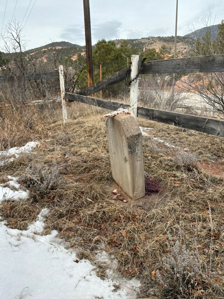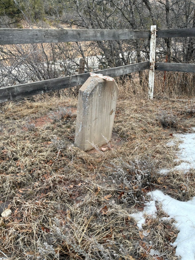 The small cemetery is nestled right next to Fort Carson land on 115, a small white fence can be seen quickly, if you know where to look. I do not recommend a visit to the dangerous side of the road. Traffic was crazy and I felt it was not safe, no appropriate parking was available. In the 1950s all 4 graves were moved to where they rest now from hairpin corners that were once there. An article in the Gazette on March 27th, 1947 protested against moving them, but ultimately for safety they were given a new resting place on a small hill, out of traffic and right of way.
