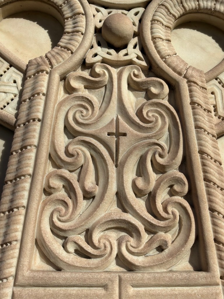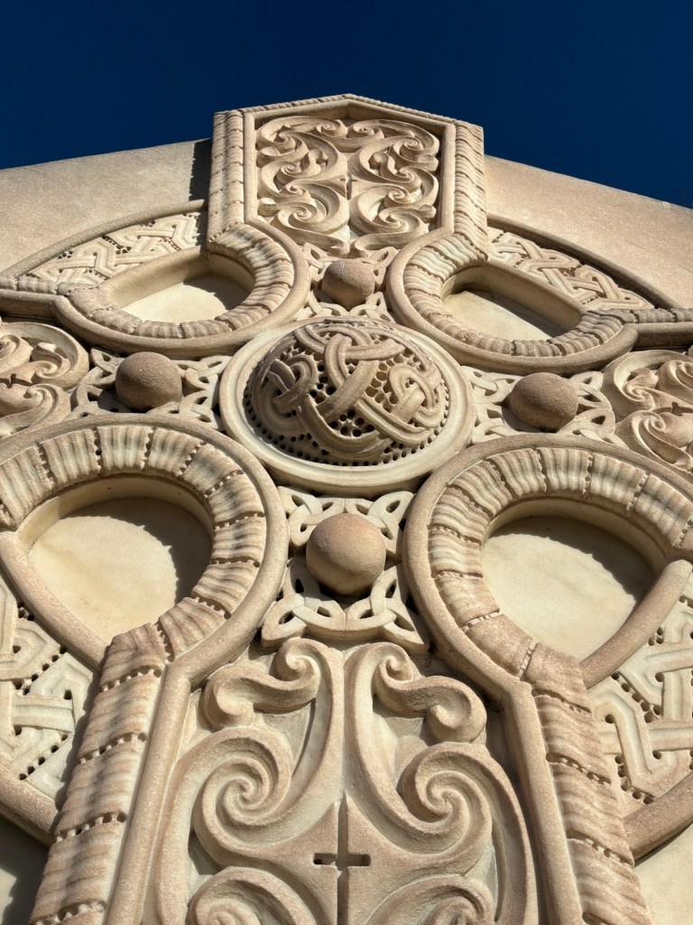 His monument stands tall and stunning on the sunny corner of the lot in the Cemetery. The Celtic Knots on the cross high above my head were so intricate and beautiful. This monument was very large, and stood very high above me. It is absolutely worth a visit to see.