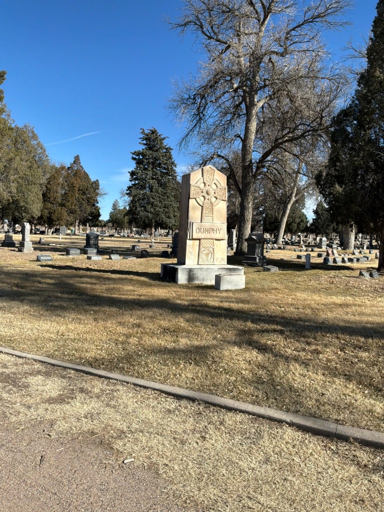 All of the Knights of Columbus were asked to attend his funeral in a publication from June 5th, 1909 in the Pueblo Sun Newspaper. “All Knights of Columbus are asked to meet at McMahon & Collier’s undertaking parlors at 9 a.m. Sunday, June 6th (1909), to attend the funeral of Brother Patrick Dunphy. The knights will escort the body to the church where a solemn high requiem mass will be sung. All knights who can possibly do so must be present. Thomas Kelly, JR. R.S.”
