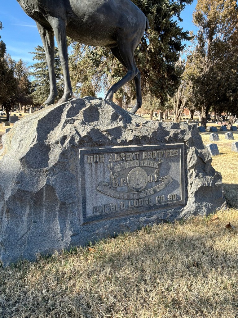 The base reads “Our Absent Brothers B.P.O.E. Pueblo Lodge No. 90.”
