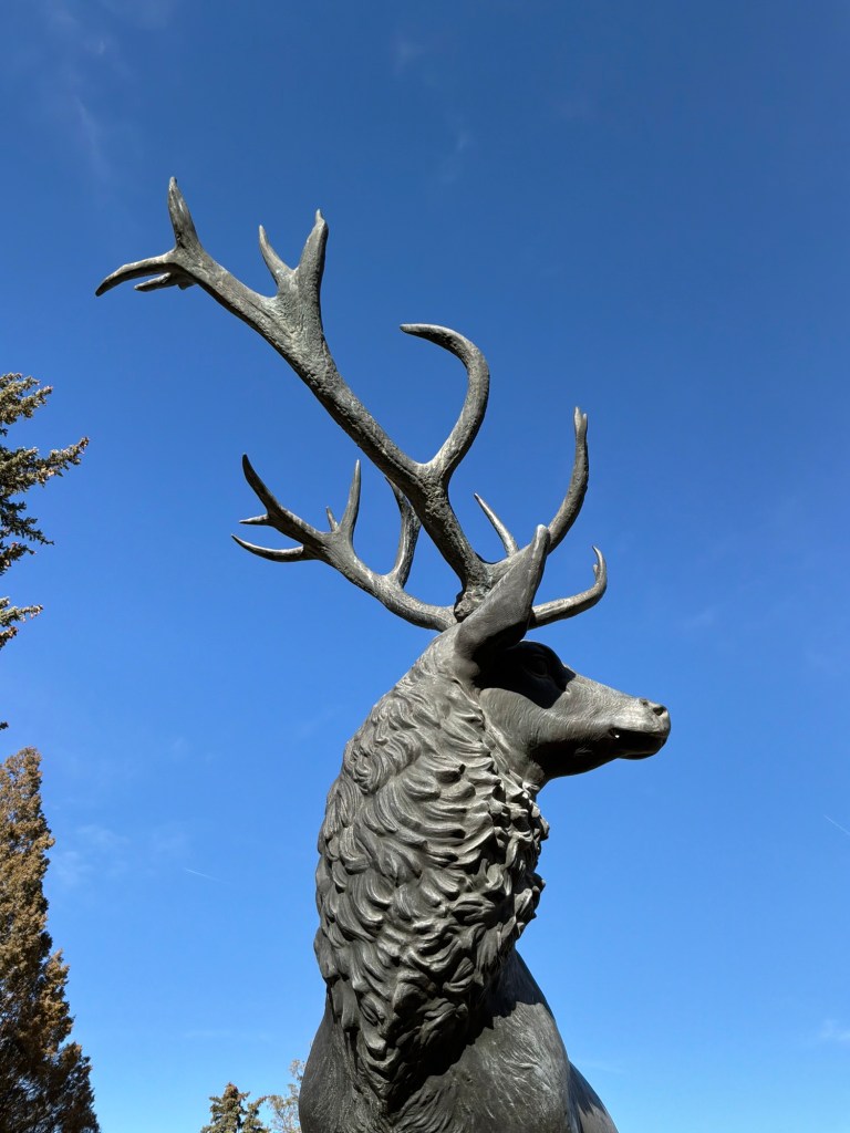 This 12 ton Monument was commissioned in 1907 by the Pueblo Elks Lodge. The carved granite base came from Salida, Colorado. The life-sized statue was ordered from a Manufacturer in Philadelphia and brought in via the railroad. What a sight that must have been for the locals to watch this elk arrive and be moved to the cemetery, then be mounted on this large base. The plaque near the Elks Rest states that the elk was moved using rolling logs in a block and tackle pulley method.